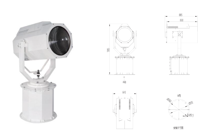 TZ7-A0L / TZ7-A0F LED Gemi Projektörü (Uzaktan kumandalı) | Işık Açısı 1.5° ile -10° Arasında Ayarlanabilir
